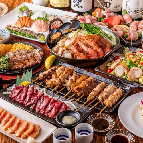 博多料理をご堪能いただけるお得なコースをご用意!博多名物の「博多串焼き」「野菜巻き」から、当店自慢の黒毛和牛のステーキや海鮮盛り合わせなど豪華素材を使用したメニューもご用意しております!3時間飲み放題付きですので大規模なご宴会や接待にもぜひご利用ください!(大宮/個室/串焼き/野菜巻き)