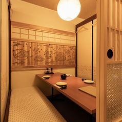 完全個室は2名様からご用意しております。間接照明と和の装飾の数々が洗練された大人な空間を演出しております!扉付きとなっておりますので周りを気にせずお楽しみいただけますよ!当店でゆっくりと羽を伸ばしてご寛ぎくださいませ♪(個室/串焼き/野菜巻き)
